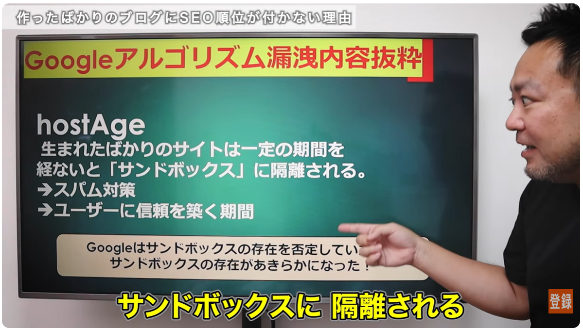 Googleアルゴリズムの流出によって、「hostAge」という考え方が見えてきました。これは、生まれたばかりのサイトが一定期間、通常の評価環境に乗りにくい状態を指すものです。スパムサイトの急激な上位表示を防ぐための仕組みと考えられます。