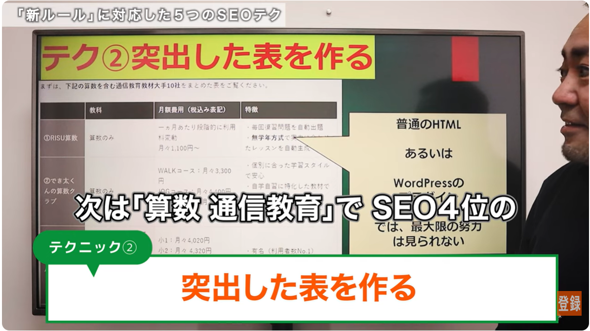新SEOへの対応テクニック②:本文上部に「突出した表」を設置する
