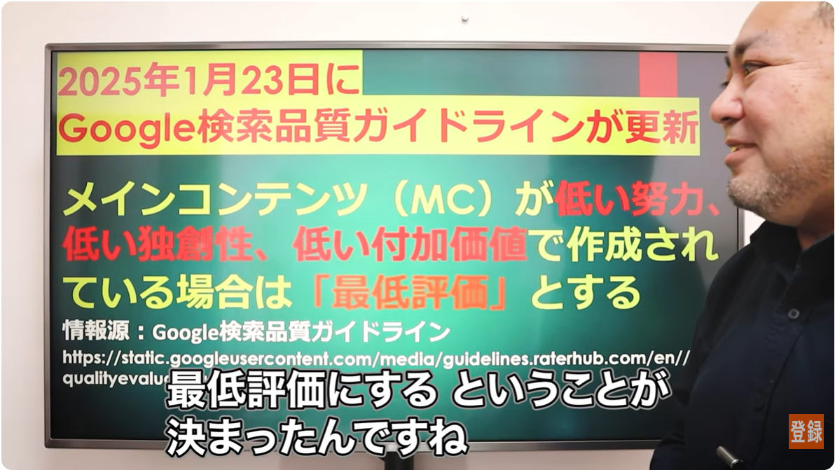 低い努力・低い独創性・低い付加価値のコンテンツは、最低評価の対象になりやすいことが、2025年1月のガイドライン更新でより明確になりました。